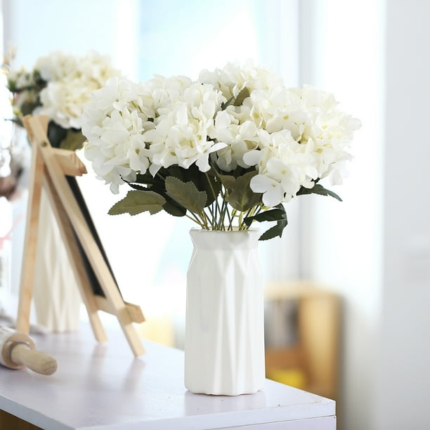 Mixture of silk hydrangeas in tall clear glass vase. 4.7 out of 5 stars 384. Buy the 23 white large hydrangea silk flower arrangement in vase at michaels.com. Luyue 10 pack silk hydrangea heads artificial flower with stem big flower arrangement for home decoration wedding centerpiece (white) 4.4 out of 5 stars. The white artificial flower heads are perfect for making bouquets, centerpieces, or boutonnieres.
